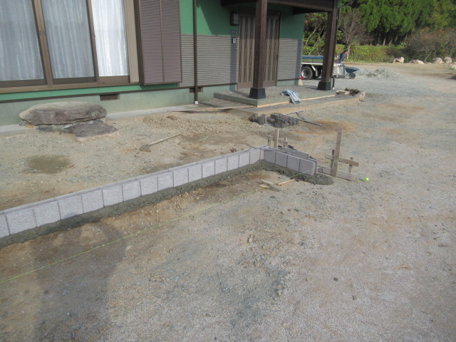 H様より、家廻りの外構をご依頼いただきました。早速お打ち合わせにお伺いしたところ、とにかく広い!!の一言でした。写真には掲載していませんが、たくさんの樹木や、ちょっとした庭園がありました。すべて撤去して、平地にすることが一番目の工事でした。そして、出来るところから少しずつ花壇等で形を作っていきました。