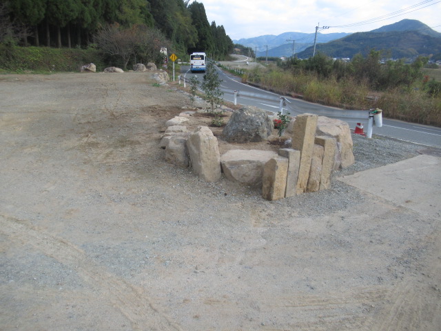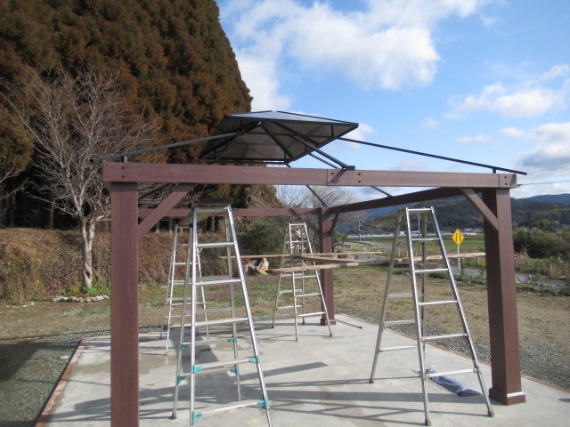 敷地内に東屋を設置しました。東屋は、H様が購入されました。写真ではわかりませんが、大きい東屋です。 敷地が広大ですが、H様は水道を色んなところに設置しているので本当に助かりました。
