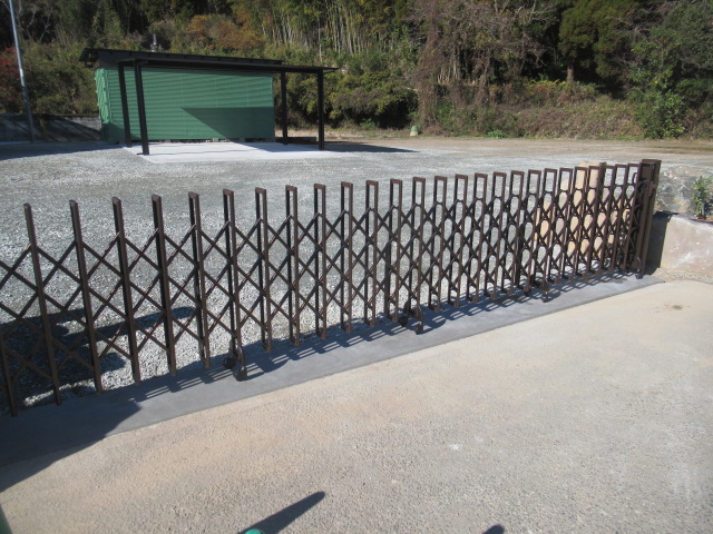 道路からの入り口には、ゲートを設置しました。広大な敷地には砂利を敷いたり、土間コンクリートを打ったりしています。